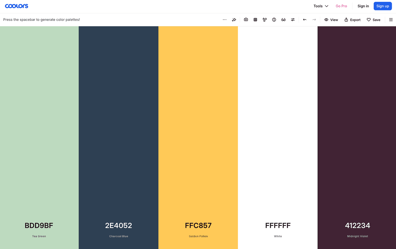 Coolors is the quickest color palette tool online. Press the spacebar to generate a palette, lock the colors you like, and press spacebar again to shuffle the rest. That’s the whole app. The free version covers almost everything most artists need. If you’ve ever wasted time searching for the right color, this may be your saving grace.
