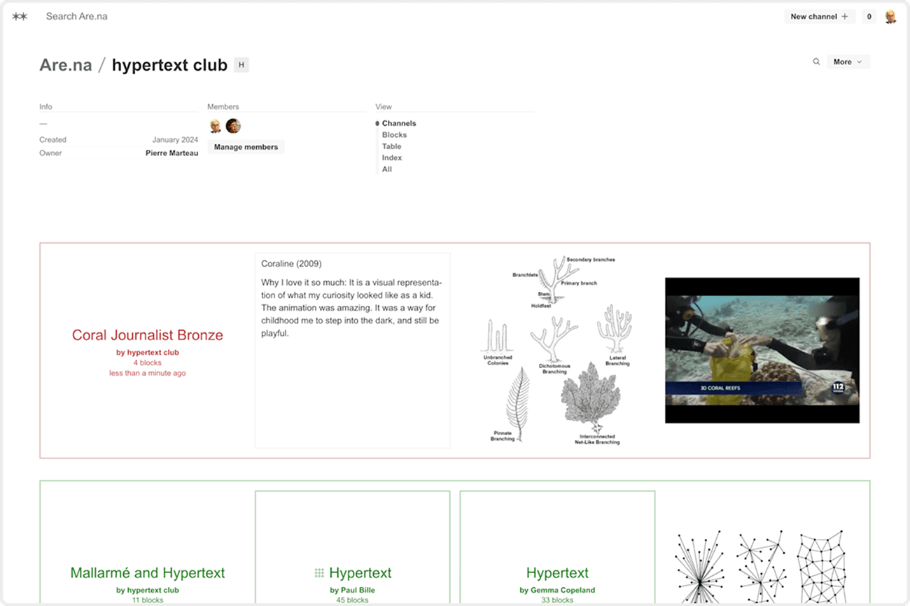 If you haven’t heard of it, Are.na is a slower, more thoughtful alternative to Pinterest. Designers and artists use it as a long-term visual notebook. It’s not meant for active project work, but rather for collecting images, articles, and ideas over time.